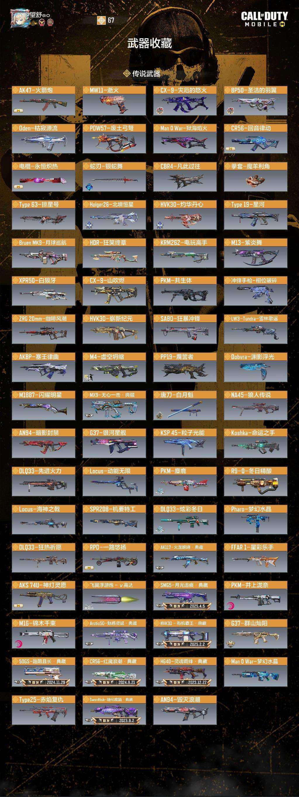 ✨2025神话皮肤全满级,联动皮肤全更新 ✨满级万象天梭全套 ✨满级星月夜全套 ✨高达联动,全套高达钢之器系列 ✨七大罪联动全套 BP50-圣洁羽翼,CX9灾厄怒火 ✨最新莉可莉丝联动全套枪械 ✨尼尔联动全套枪械 ✨满级幽冥花海全套 ✨满级离散单元全套 ✨满级天策含光全套 ✨满级索菲亚全套满级 ✨微 信钱包账户充值记录7.1万