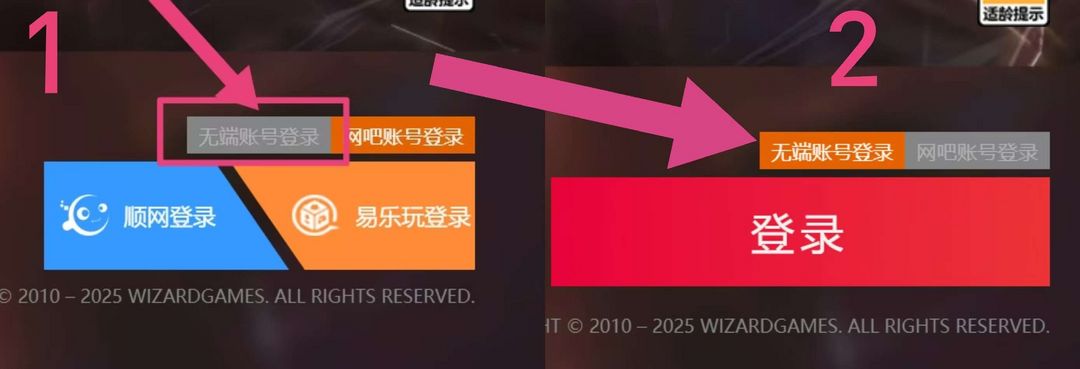 ⚠️租号必看:登录时要选择“无端账密登录”,不要选旁边的易乐玩和顺网登录,不用选择手机号登录,选择账号密码登录即可,严禁无故撤单,详情如图所示⚠️